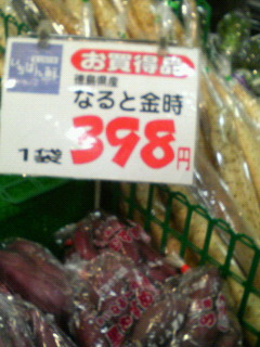 今日の発見夢のジャンプコラボ商品(ちょっとおしい、銀時は流石に無い)食べ物らしいがどんなものかは不明(なぜかこの札の下には芋が…)芋の名前なのか?